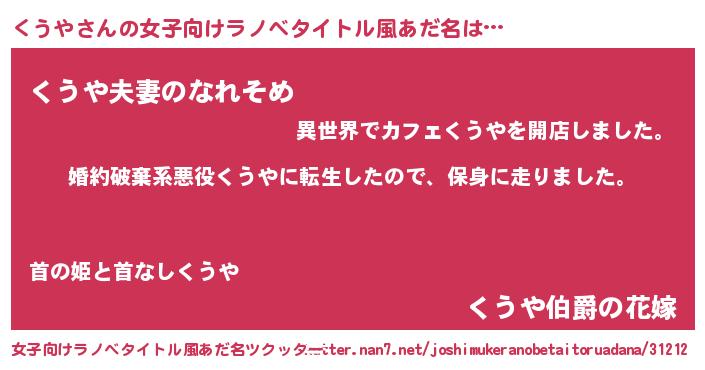 | 男性向けラノベタイトル風あだ名 | 『クウヤスレイヤー』 |