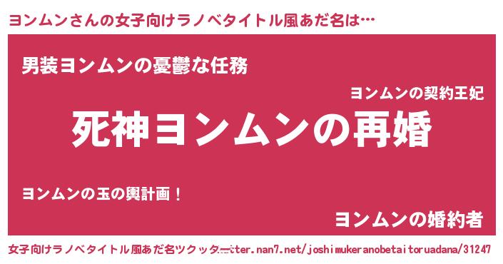 | 男性向けラノベタイトル風あだ名 | 『ノーゲーム・ノーヨンムン』 |