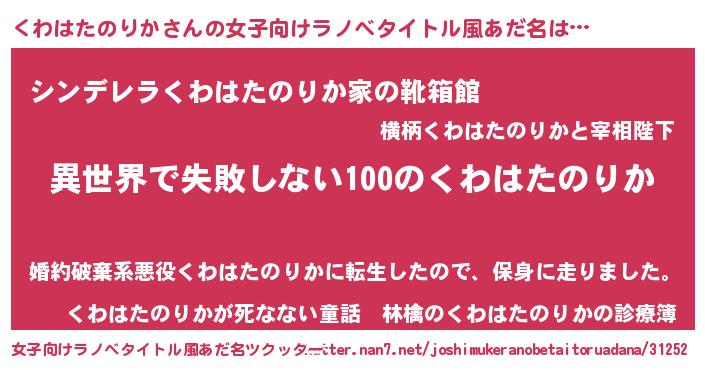 | 男性向けラノベタイトル風あだ名 | 『くわはたのりかという概念が存在しない退屈な世界 』 |