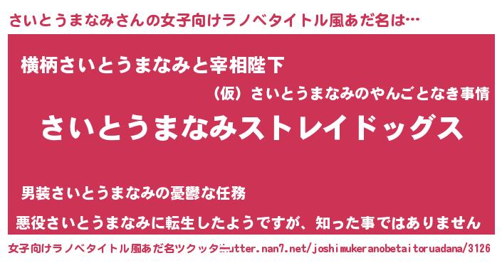 | 男性向けラノベタイトル風あだ名 | 『Re:さいとうまなみから始める異世界生活』 |