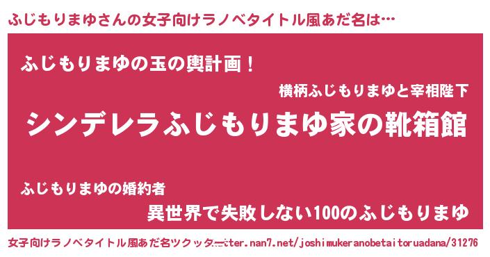 | 胡散臭い通販商品みたいなあだ名 | 『絶対に幸福をもたらす健康食品…その名も「ふじもりまゆ」』 |