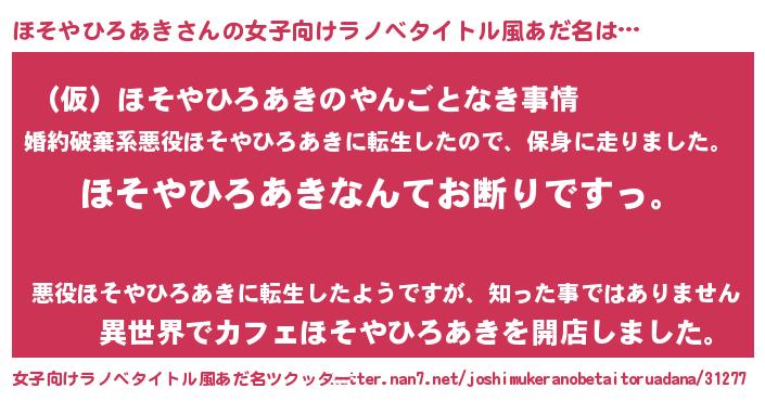 | 肩書あだ名 | 『ほそやひろあき閣下』 |