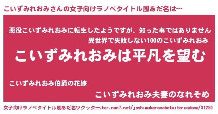 | 男性向けラノベタイトル風あだ名 | 『ダンジョンにこいずみれおみを求めるのは間違っているだろうか』 |