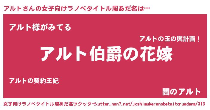 | 意味不明あだ名 | 『アルトフォーエバー』『自称アルト』 |