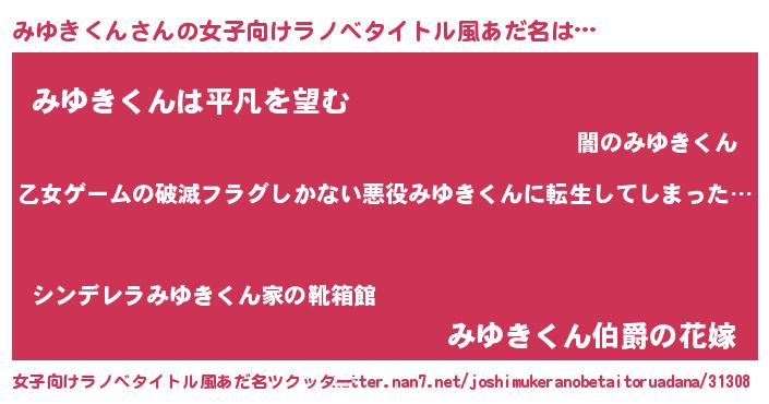 | 意味不明あだ名 | 『住所不定無職みゆきくん(56歳)』 |