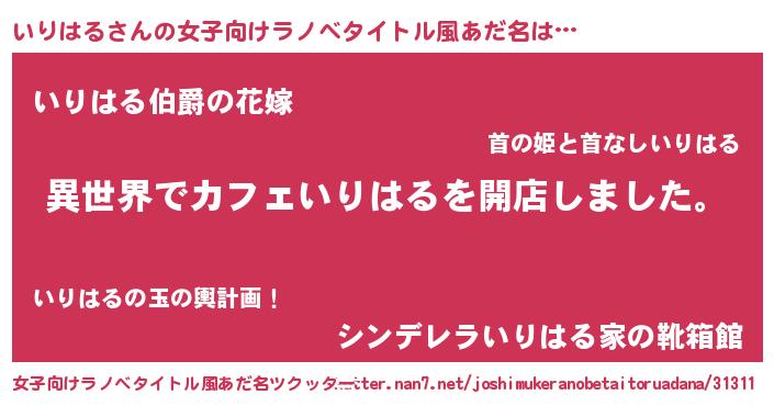 | 意味不明あだ名 | 『永久保存いりはる』『自称いりはる』 |