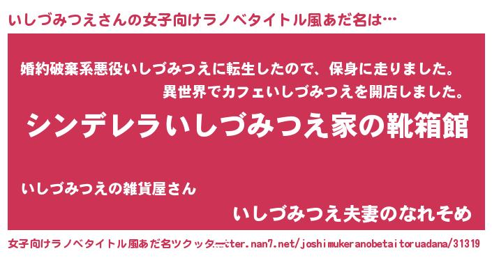 | ヘコむあだ名 | 『いしづみつえ(小並感)』『豆乳』 |