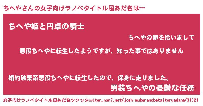 | 意味不明あだ名 | 『住所不定無職ちへや(91歳)』 |