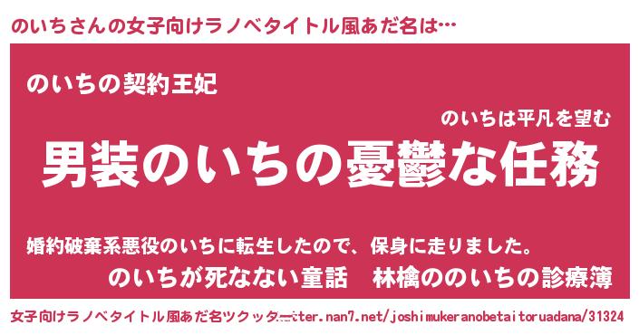 | 男性向けラノベタイトル風あだ名 | 『うちののいちが世界を掌握している!』 |