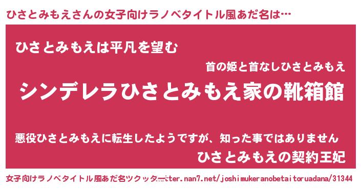 | 欧米人風あだ名 | 『ひさとみもえ・ステッグマイヤー』 |