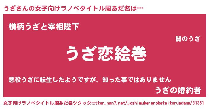 | 男性向けラノベタイトル風あだ名 | 『ノーゲーム・ノーウザ』 |