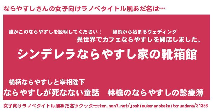 | ヘコむあだ名 | 『ならにー』『ならやすし(震え声)』 |