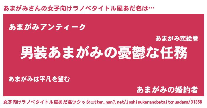 | 男性向けラノベタイトル風あだ名 | 『冴えないあまがみの育てかた』 |