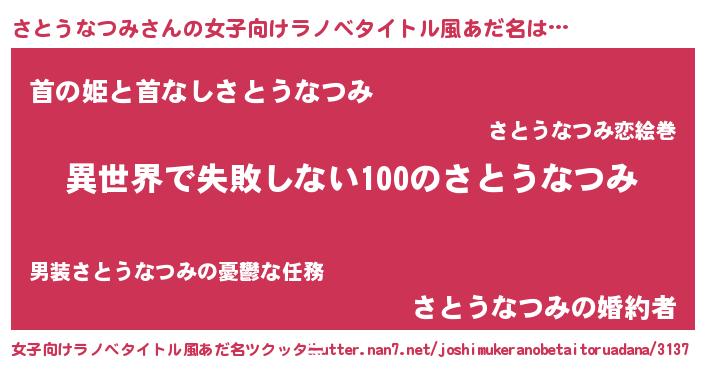 | 男性向けラノベタイトル風あだ名 | 『さとうなつみという概念が存在しない退屈な世界 』 |