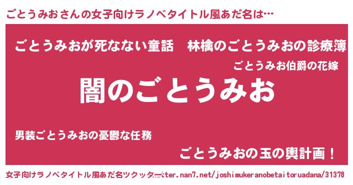 | 男性向けラノベタイトル風あだ名 | 『Re:ごとうみおから始める異世界生活』 |
