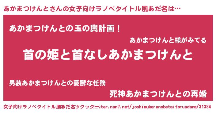 | 男性向けラノベタイトル風あだ名 | 『はたらくあかまつけんとさま!』 |
