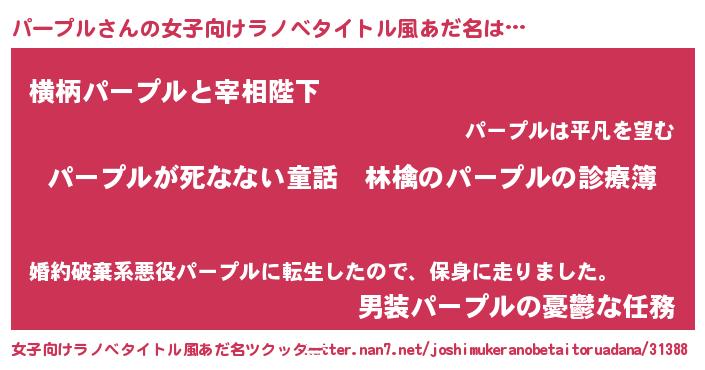 | 男性向けラノベタイトル風あだ名 | 『魔弾の王とパープル』 |