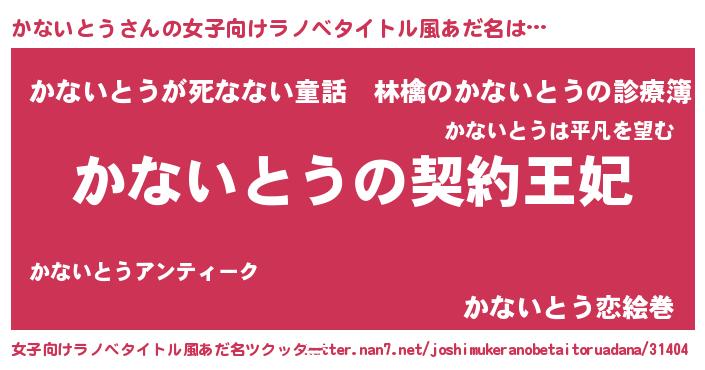 | 男性向けラノベタイトル風あだ名 | 『誰もが恐れるあのかないとうが、ぼくの専属メイドになるようです。』 |