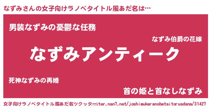 | 男性向けラノベタイトル風あだ名 | 『魔法科高校のなずみ』 |
