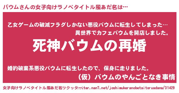 | ヘコむあだ名 | 『バウにゅー』『バウム(震え声)』 |