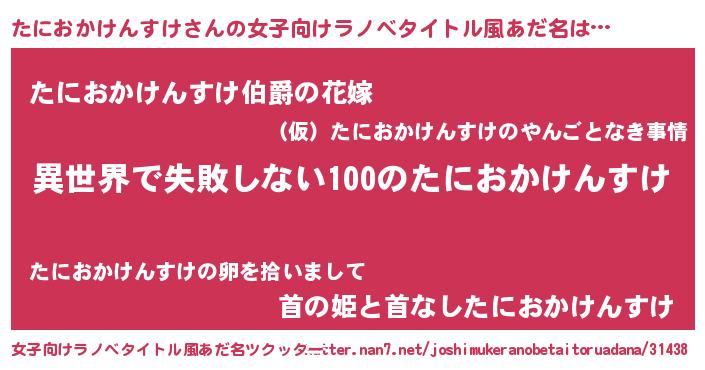 | 男性向けラノベタイトル風あだ名 | 『たにおかけんすけという概念が存在しない退屈な世界 』 |