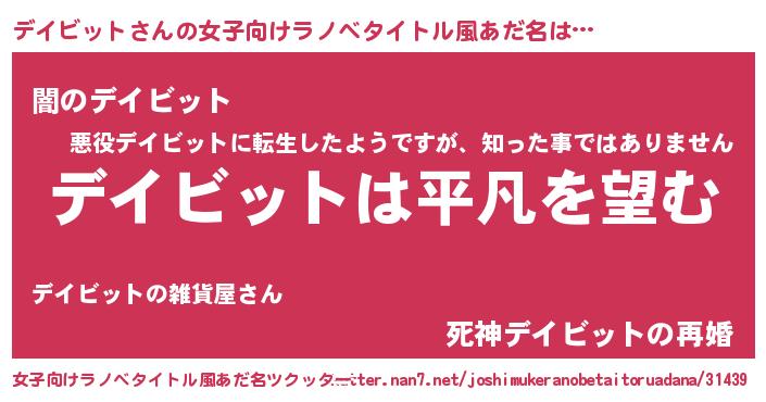 | 胡散臭い通販商品みたいなあだ名 | 『信頼と実績のサプリメント…その名も「デイビット」』 |