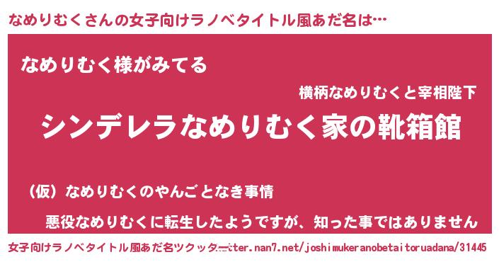 | 男性向けラノベタイトル風あだ名 | 『緋弾のナメリムク』『なめりむくの憂鬱』 |