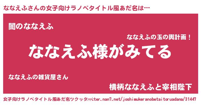 | 男性向けラノベタイトル風あだ名 | 『ななえふの嫁は女の子じゃないと思った?』 |