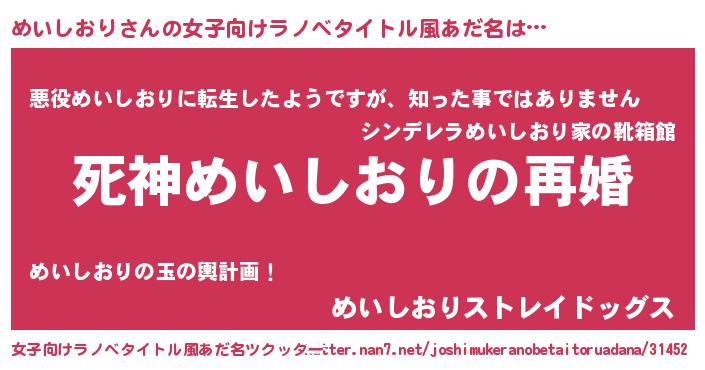 | ヒーロー風カッコイイあだ名 | 『慈愛の使者めいしおり』『仮面メイダー』 |