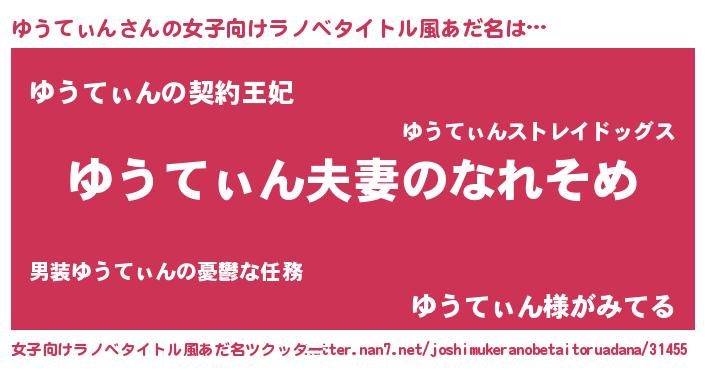 | 男性向けラノベタイトル風あだ名 | 『おまえをオタクにしてやるから、俺をゆうてぃんにしてくれ! 』 |