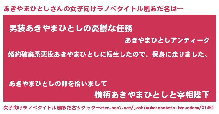 | 男性向けラノベタイトル風あだ名 | 『アキヤマヒトシスレイヤー』 |