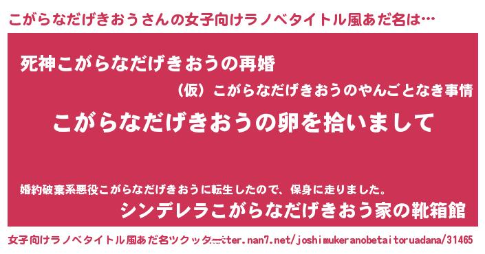 | 胡散臭い通販商品みたいなあだ名 | 『伝統あるネックレス…その名も「こがらなだげきおう」』 |