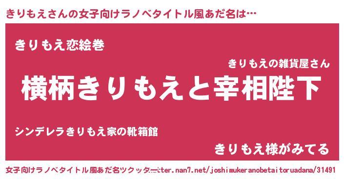 | ヒーロー風カッコイイあだ名 | 『慈愛の使者きりもえ』『天弓騎士キリ』 |