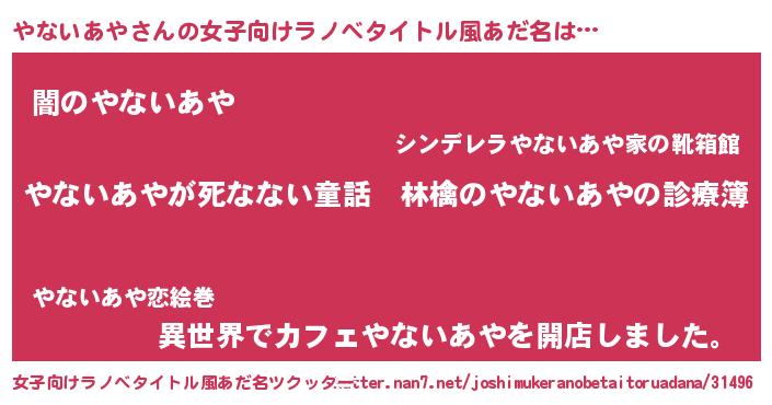 | 意味不明あだ名 | 『住所不定無職やないあや(74歳)』 |