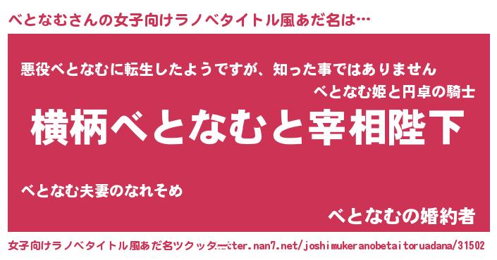 | 胡散臭い通販商品みたいなあだ名 | 『世界中を虜にした100年もののヴィンテージワイン…その名も「べとなむ」』 |