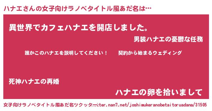| 胡散臭い通販商品みたいなあだ名 | 『億万長者になれる霊験あらたかなお札…その名も「ハナエ」』 |