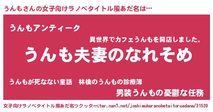 | ヘコむあだ名 | 『うんも(爆)』『豆乳』『うんぷりん』 |