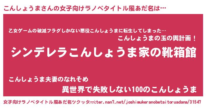 | 意味不明あだ名 | 『住所不定無職こんしょうま(12歳)』 |