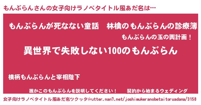 | 男性向けラノベタイトル風あだ名 | 『もんぶらんという概念が存在しない退屈な世界 』 |