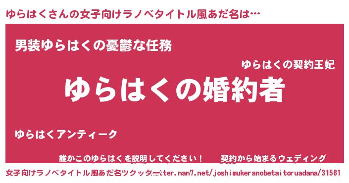 | 胡散臭い通販商品みたいなあだ名 | 『運命の人と巡り会える高級そうな絵画…その名も「ゆらはく」』 |