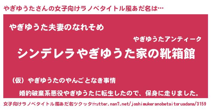 | 男性向けラノベタイトル風あだ名 | 『緋弾のヤギユウタ』『やぎゆうたの憂鬱』 |