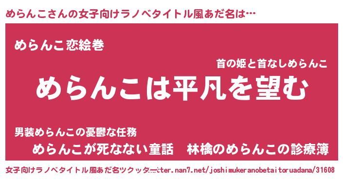 | 男性向けラノベタイトル風あだ名 | 『ダンジョンにめらんこを求めるのは間違っているだろうか』 |
