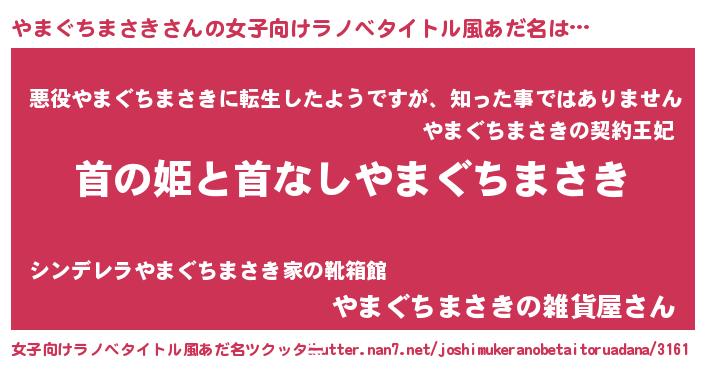 | 意味不明あだ名 | 『住所不定無職やまぐちまさき(9歳)』 |