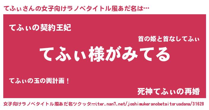 | 意味不明あだ名 | 『とにかく怪しいてふぃ』 |