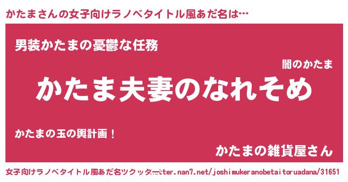 | 男性向けラノベタイトル風あだ名 | 『おまえをオタクにしてやるから、俺をかたまにしてくれ! 』 |