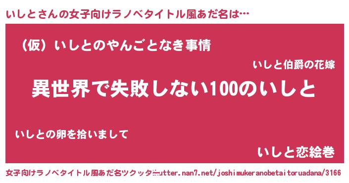 | 男性向けラノベタイトル風あだ名 | 『いしとという概念が存在しない退屈な世界 』 |