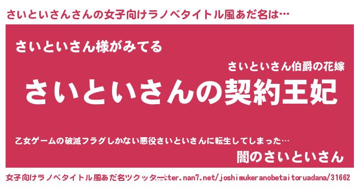 | 男性向けラノベタイトル風あだ名 | 『さいといさんという概念が存在しない退屈な世界 』 |