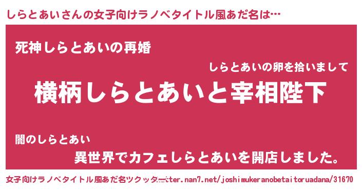 | 男性向けラノベタイトル風あだ名 | 『しらとあいに滅ぼされるだけの簡単なお仕事です』 |