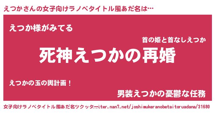 | 男性向けラノベタイトル風あだ名 | 『ノーゲーム・ノーエツカ』 |