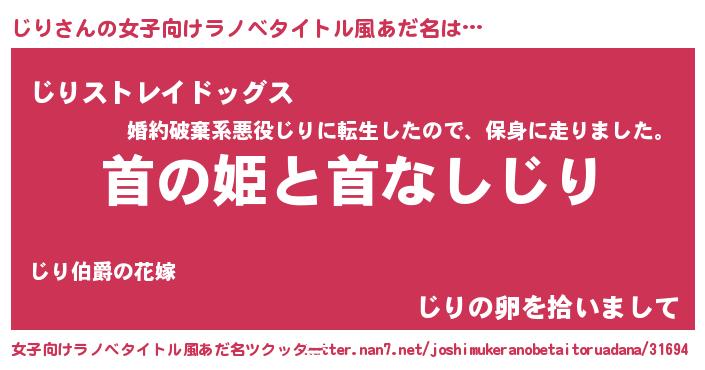 | 男性向けラノベタイトル風あだ名 | 『はたらくじりさま!』 |